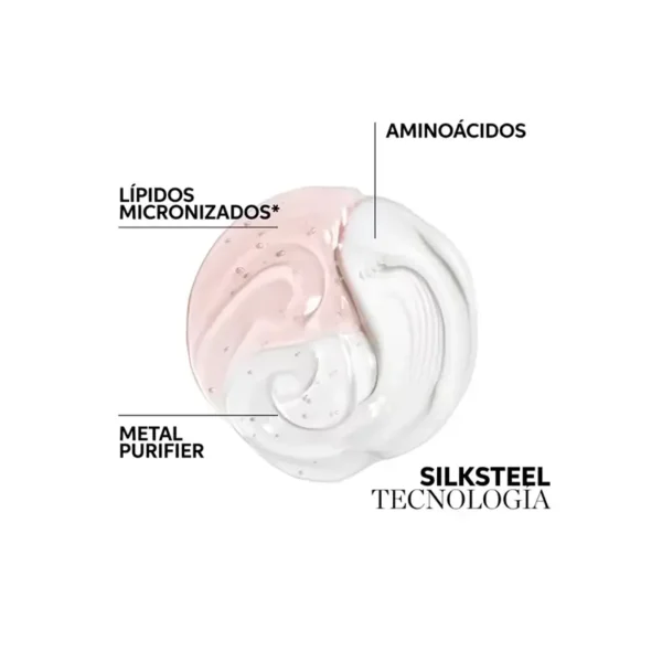 La tecnología EDDS de Shampoo elimina las impurezas metálicas a través de la acción antioxidante. Los lípidos micronizados proporcionan un acondicionamiento húmedo instantáneo. El programa Silksteel Fusion ayuda a proteger el cabello de daños mayores.