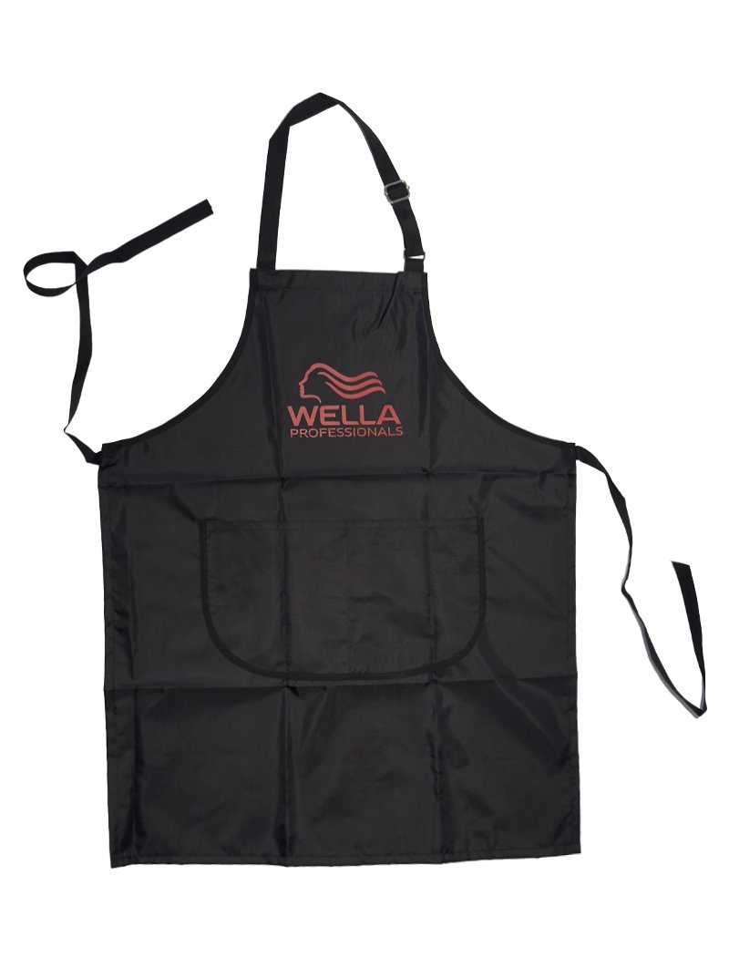 Pechera negra Logo Wella en rojo.